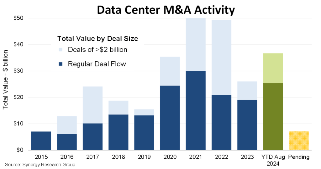 The report also touched on the growing trend of mergers and acquisitions (M&A) in the data center industry. Synergy Research Group forecasts that M&A deals are set to reach record levels in 2024, surpassing $40 billion. So far in 2024, closed deals have been valued at $36.7 billion, with an additional $7.1 billion agreed but not yet finalized.